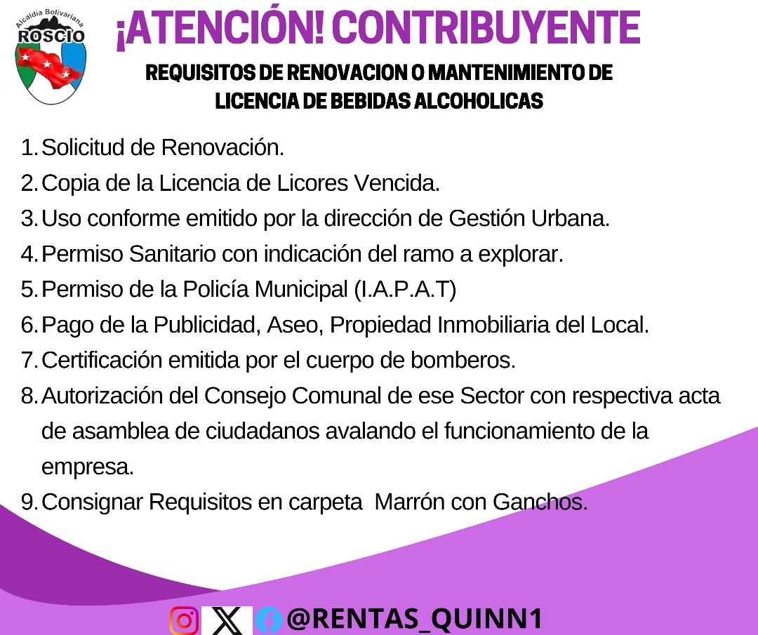 Requisitos de renovación o mantenimientos de Licencias de Bebidas Alcohólicas